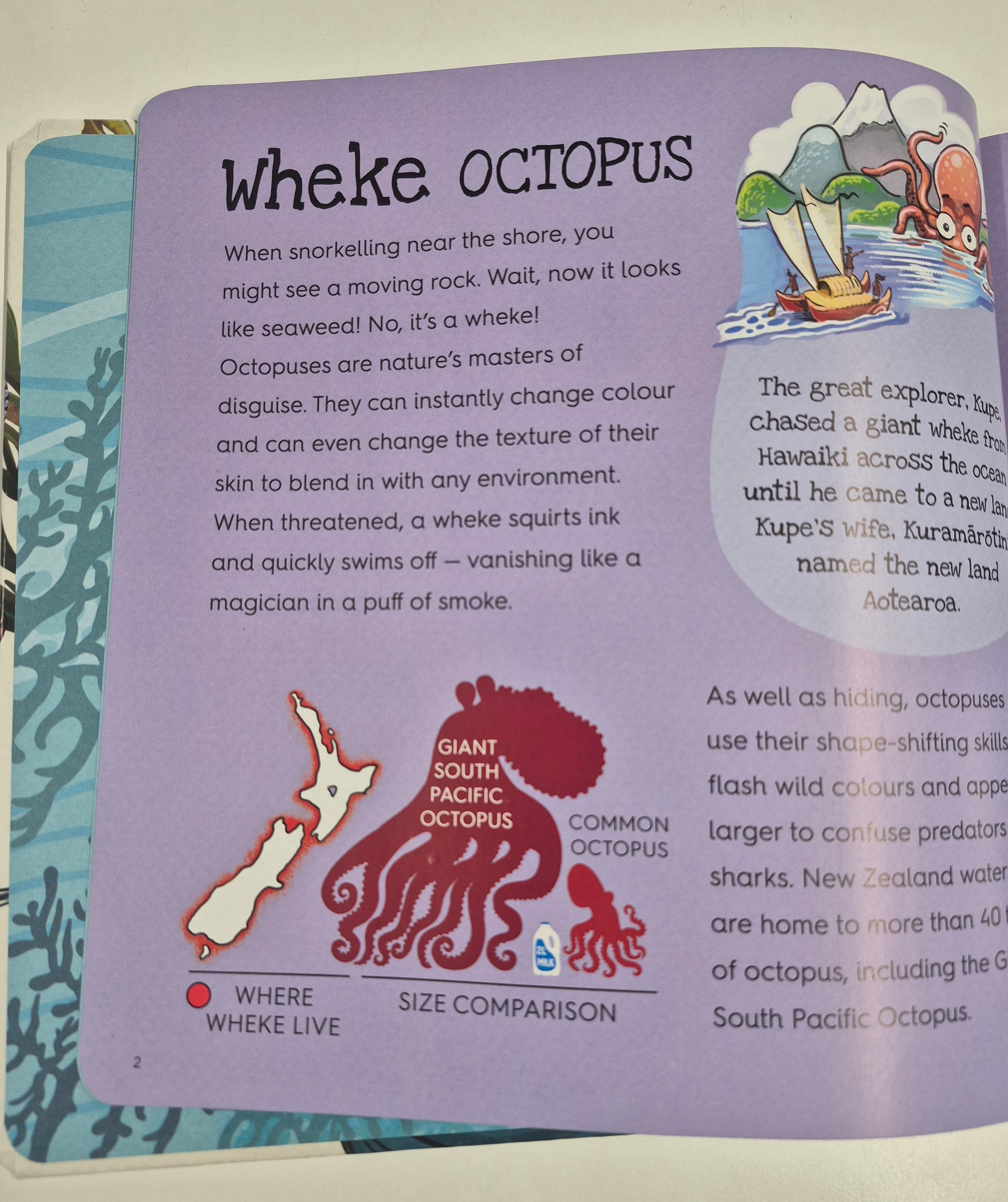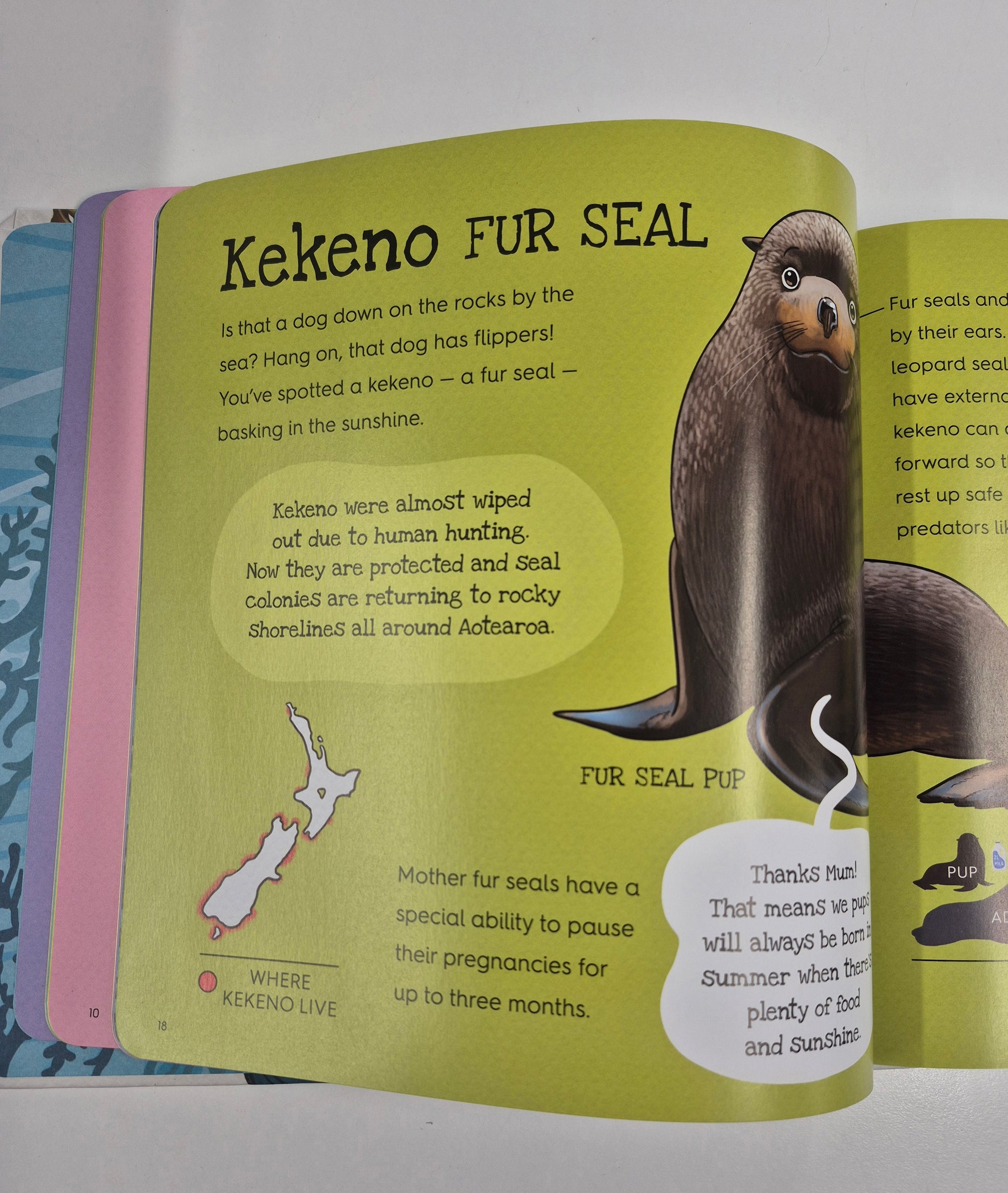 Join Donovan Bixley on an exciting journey exploring the fascinating coastal creatures of Aotearoa. Discover deep-sea divers, resilient survivors, record breakers, and New Zealand’s champion fliers, each introduced with their te reo Māori names.