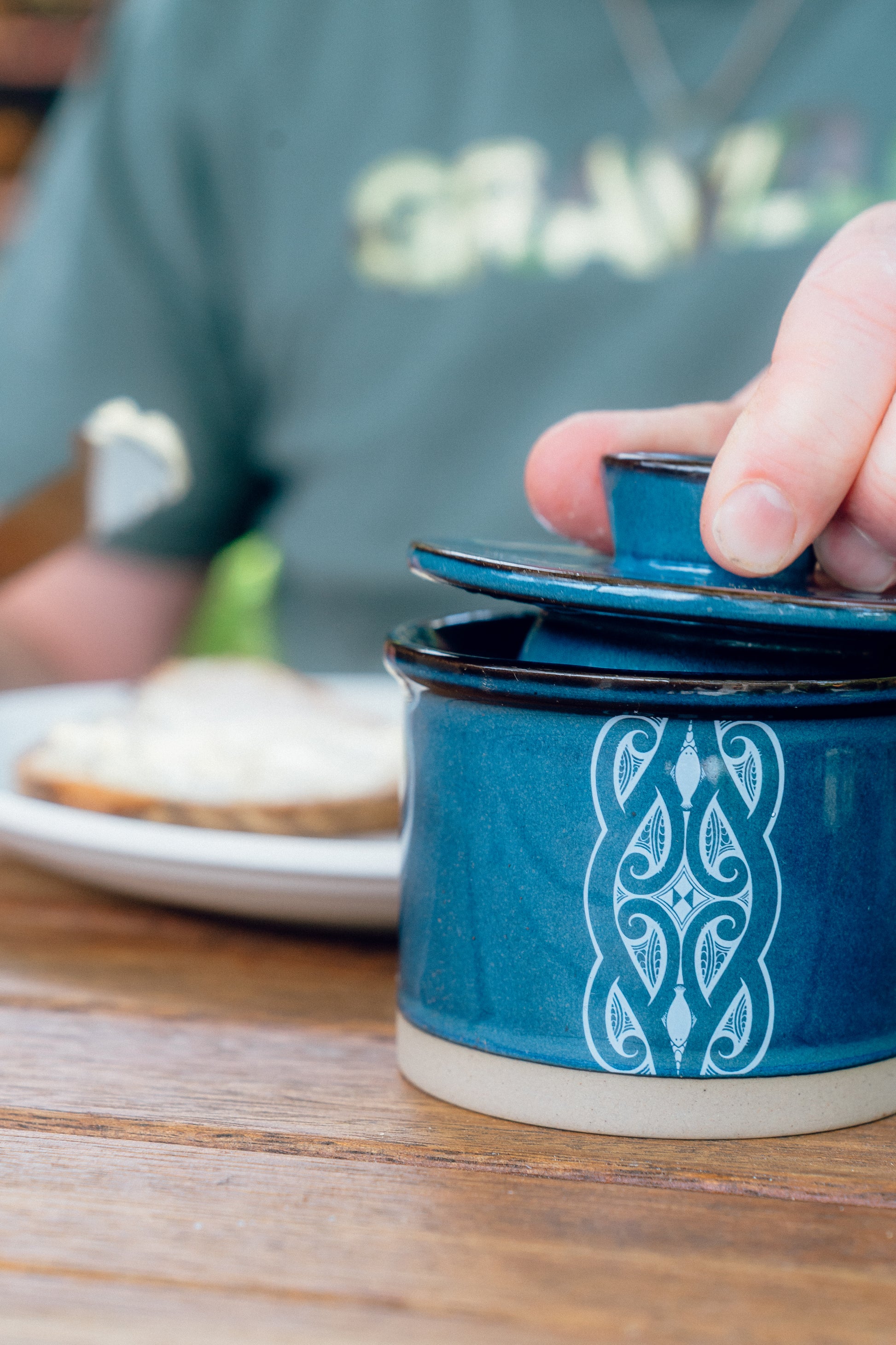 Designed by the talented Miriama Grace-Smith. Keep your butter fresh and spreadable in style, with this glazed ceramic beauty in a stunning blue hue. Breakfast just got a lot more stylish.