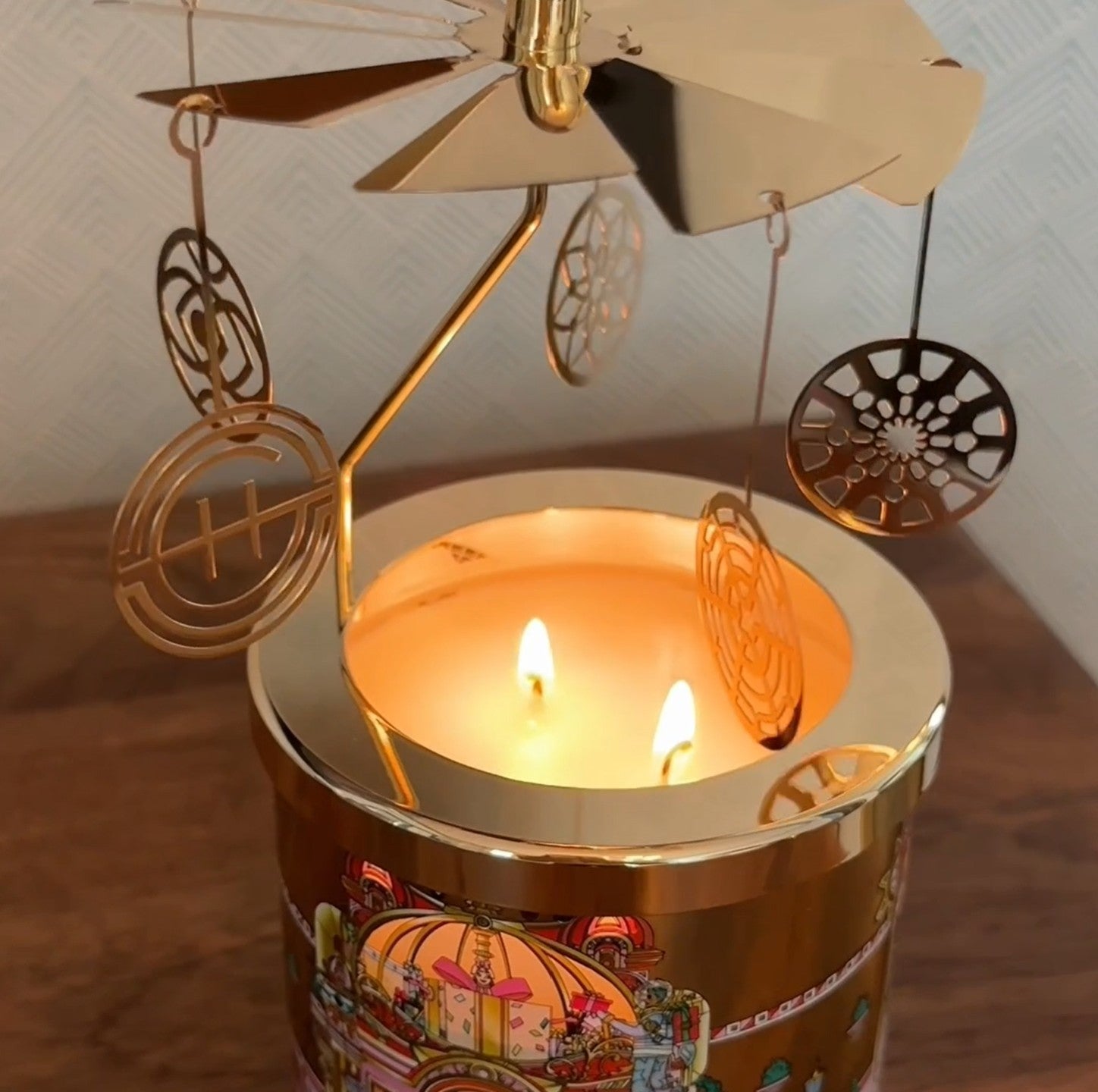 Our good-enough-to-eat Vanilla Caramel scent is even better topped with a festive carousel that twirls with delight.