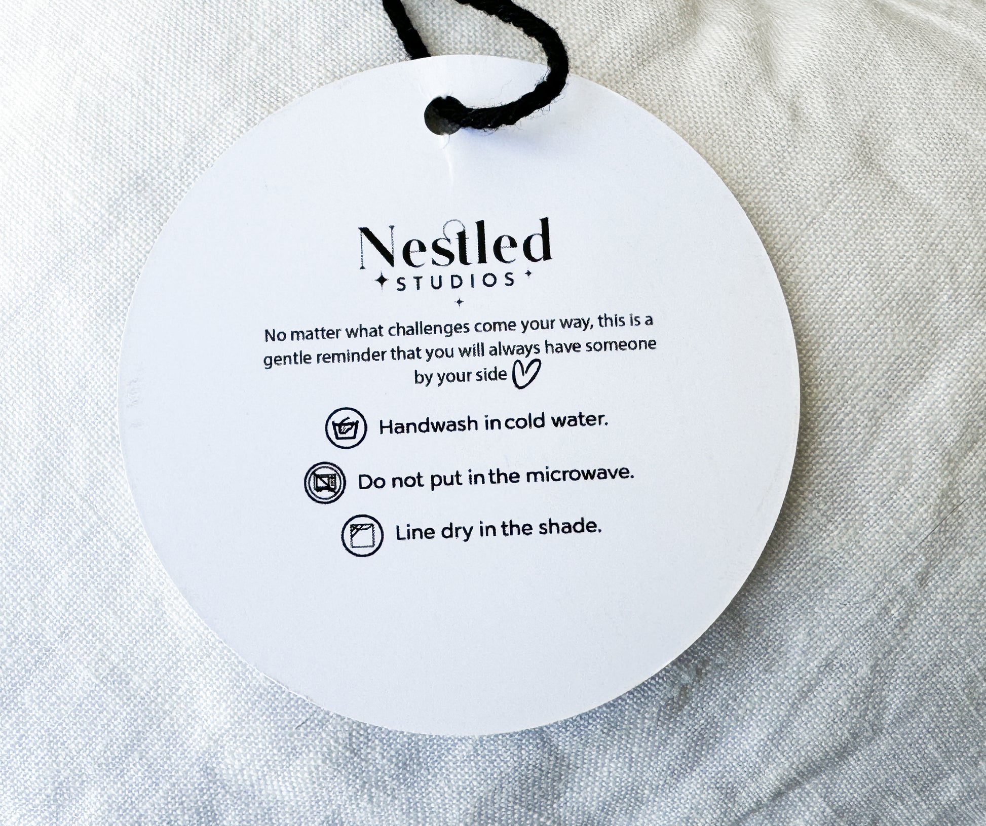 Nestled Studios creates special products that bring joy, comfort, and a touch of warmth to daily life. Perfect for friends, family, or even as a treat for yourself, this pillow is a gift that speaks from the heart.