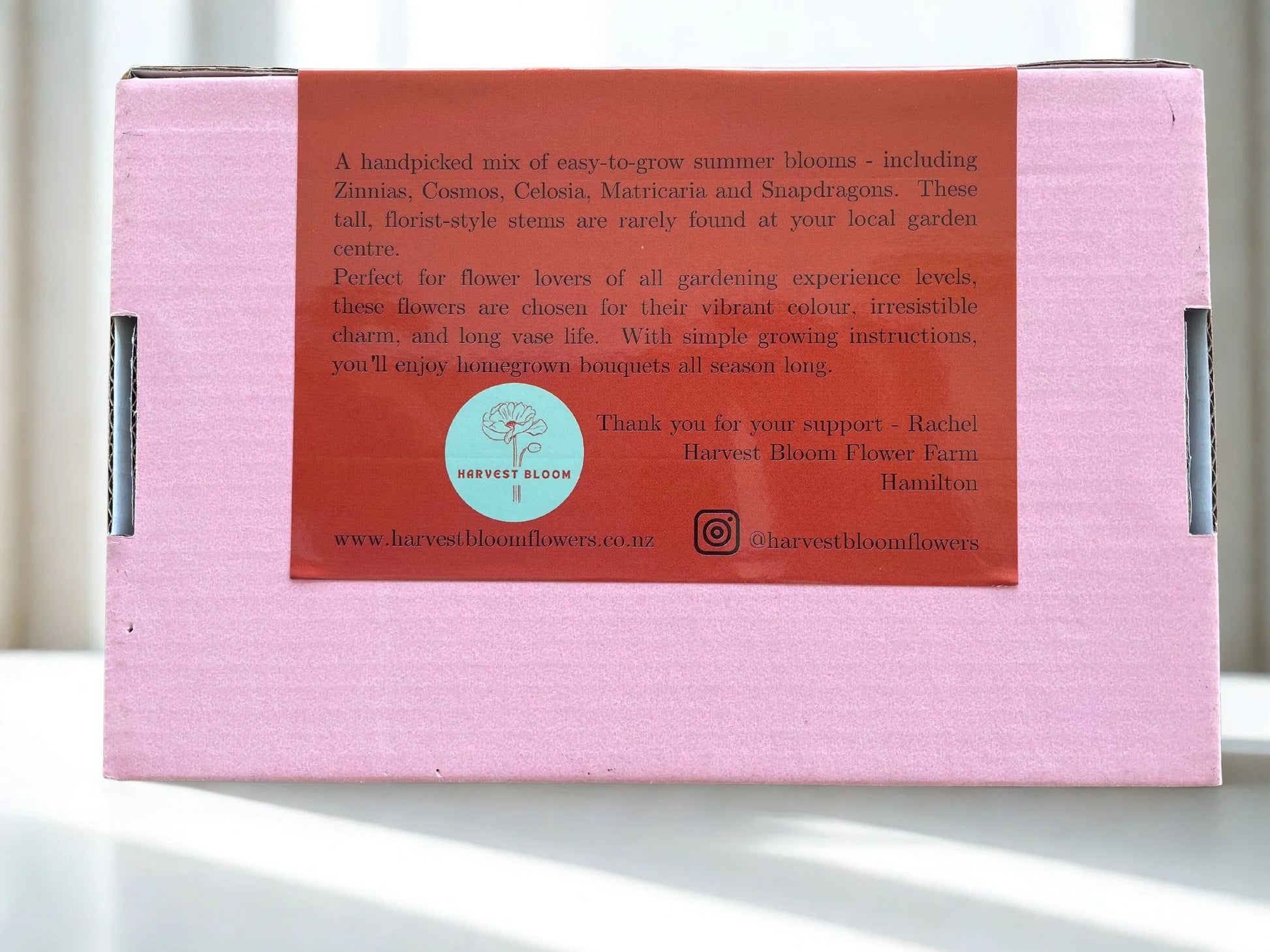 Each kit includes five packets of easy-to-grow flower seeds: Zinnias, Cosmos, Celosia, Matricaria, and Snapdragons. These are tall-stemmed varieties specially chosen for their colour, charm, and vase life — not the kind you’ll find at a garden centre.