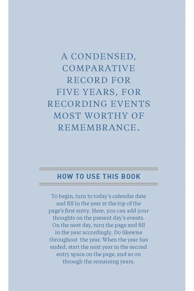 More than a daily diary journal: For those daunted by the idea of keeping a diary, this is a simple five-minute journal commitment of just one line a day. Each page of the journal includes an entry for five successive years, allowing users to revisit previous thoughts on a specific day of the year over the span of five years.