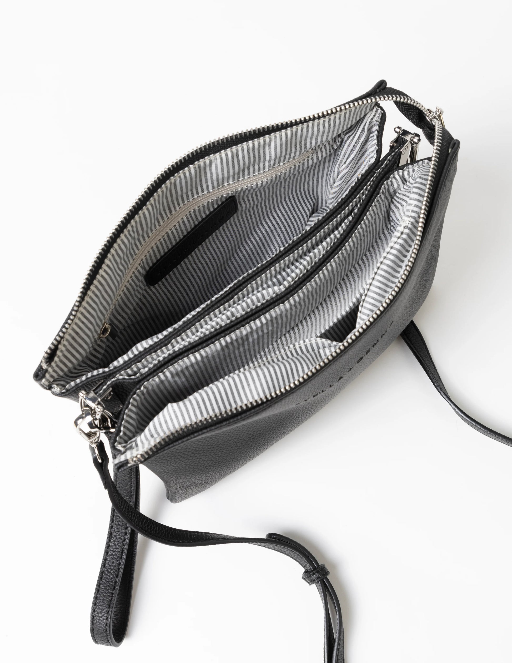 The Frankie Handbag by Stella + Gemma perfectly balances sophistication with practicality. Its sleek silver zip complements the refined design, while three distinct compartments allow for seamless organisation of your essentials. Ideal for the modern woman who values both style and function, this multi-pouch handbag offers elegant storage solutions for everyday use or special occasions, ensuring you maintain a polished and composed look wherever you go.